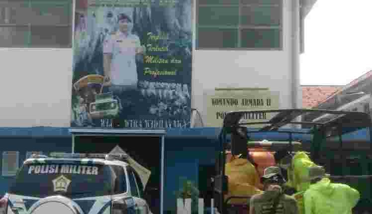 Untuk hari ini Rabu (1/4), Markas Polisi Militer (Pom), Dinas Penerangan dan Primkopal Koarmada II yang letaknya dalam satu komplek melakukan penyemprotan disinfektan.