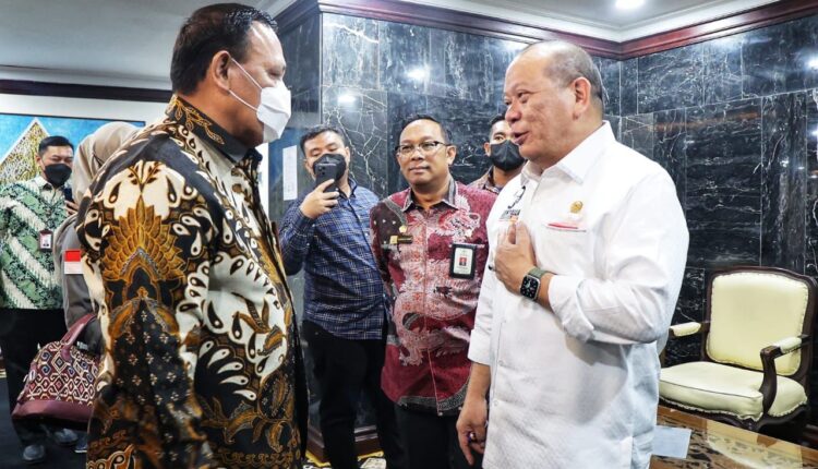 JAKARTA, LNM – Ketua DPD RI, AA LaNyalla Mahmud Mattalitti, bertemu Ketua Komisi Pemberantasan Korupsi (KPK), Firli Bahuri, di Ruang Kerja Ketua DPD RI, Kompleks Parlemen, Senayan, Selasa (14/12/2021).