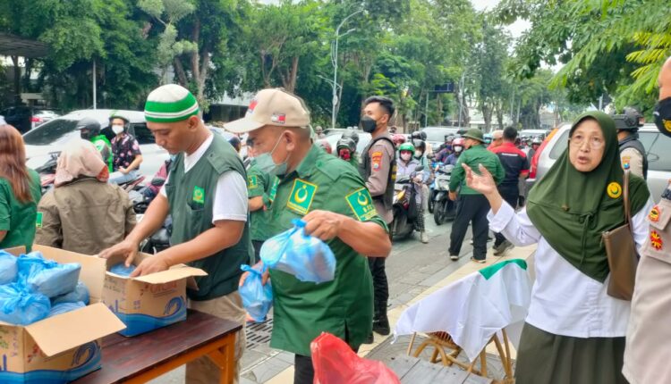Surabaya, – Kegiatan Muslimat Bulan Bintang Jawa Timur dalam rangka melaksanakan amaliyah di bulan suci ramadhan. diantaranya pembagian 500 bingkisan takjil yang di berikan pada masyarakat surabaya pengguna jalan . ( sabtu 16/4/2022)