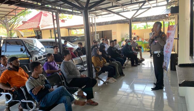 Sampang, – Satlantas Polres Sampang melaksanakan kegiatan Sosialisasi dan memberi himbauan kepada masyarakat yang berada di Samsat Kabupaten Sampang, pada hari Rabu (29 Juni 2022), sekira pukul 09.00 WIB.