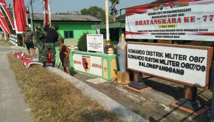 Meriahkan HUT RI Ke-78 Koramil 0817/09 Balongpanggang Pasang Umbul-Umbul