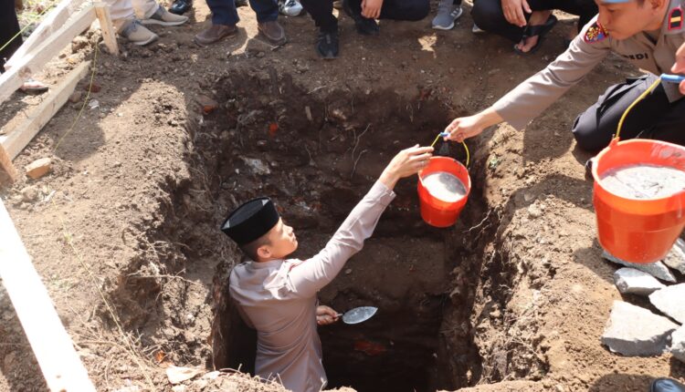 Batu, LNM – Kapolres Batu AKBP Oskar Syamsuddin, S.I.K., M.T. melaksanakan peletakan batu pertama yang merupakan tahapan awal untuk dimulainya renovasi dan pembangunan Masjid Darul Taqwa Bhayangkara yang bertempat di samping Mako Polsek Batu, Jum’at (28/7/2023).