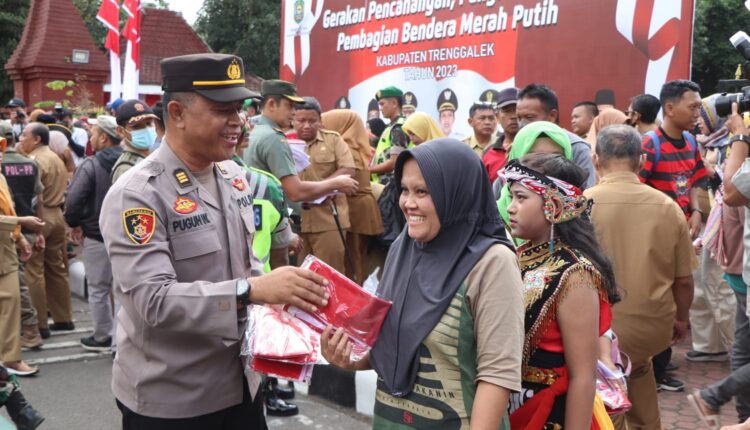 Polres Trenggalek Dukung Penuh Pencanangan, Pengibaran dan Pembagian Bendera Merah Putih