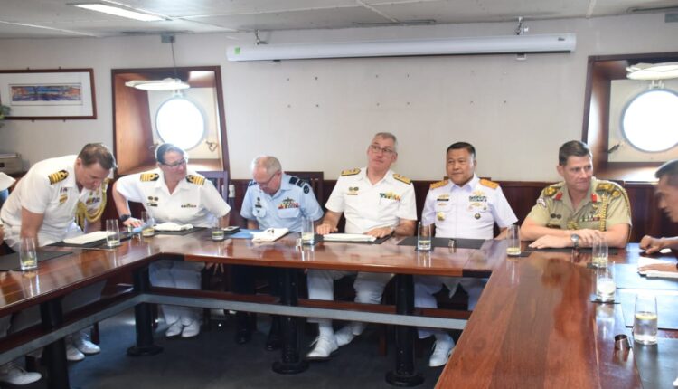 Surabaya, LNM – Dalam upaya menjaga hubungan baik antara TNI Angkatan Laut dengan Angkatan Laut Australia, Wakil Komandan Komando Pembinaan Doktrin, Pendidikan dan Latihan TNI Angkatan Laut (Wadan Kodiklatal) Laksda TNI Supardi mewakili Komandan Kodiklatal Letjen TNI Marinir Suhartono, Menemui Pangarmada Australia Rear Admiral Chris Smith yang dikemas lewat acara makan siang bersama di Papal Perang HMAS Anzac, yang sedang sandar di Dermaga Umum Jamrud Utara Tanjung Perak Surabaya, Selasa (1/8/2023).