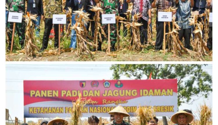 Dandim Gresik Terjun Langsung, Panen Padi dan Jagung Idaman Dalam Rangka Ketahanan Pangan Nasional