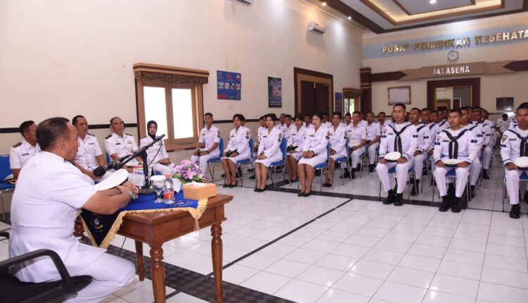 Surabaya, LNM – Jelang penutupan pendidikan (Tupdik), Siswa Pendidikan Pertama Bintara (Dikmaba) dan Siswa Pendidikan Pertama Tamtama (Dikmata) TNI AL Korps Kesehatan Angkatan 42/II menerima pembekalan dari Komandan Pusat Pendidikan Kesehatan (Danpusdikkes) Kodikdukum Kodiklatal, Kolonel Laut (K) dr. Pudjo D. Laksono.