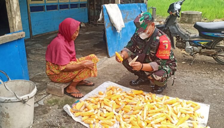Dalam kesempatan menjalin komsos tersebut, Serda Aris memberikan semangat kepada Bu Sriyatun yang tengah lanjut usia dalam menekuni aktifitasnya dalam bertanam jagung.