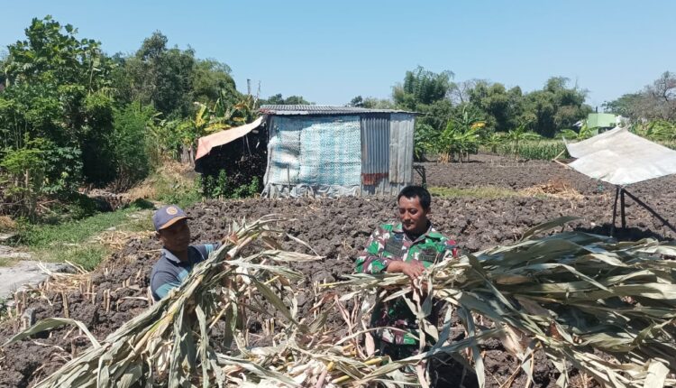 Sukseskan Ketahanan Pangan, Babinsa Menganti Bantu Petani Panen jagung