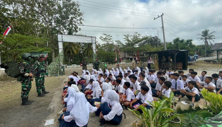 Blitar, LNM – Keberadaan Yonarhanud 8/MBC di lokasi Latihan Pratugas Kecamatan Wonotirto, Kabupaten Blitar, Jawa Timur menyita perhatian pelajar Sekolah Menengah Pertama Satap yang berlokasi di Desa Ngadipuro, Kecamatan Wonotirto, Kabupaten Blitar.