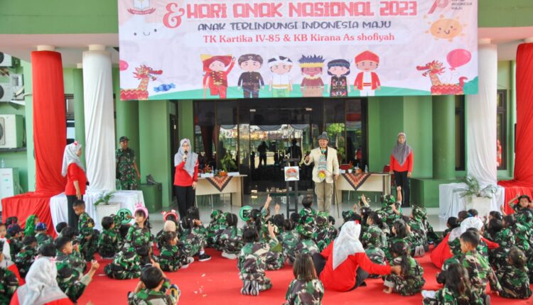 Gresik, LNM – Dalam rangka memperingati Hari Anak Nasional 2023 dan Gebyar menyambut HUT Kemerdekaan RI ke 78, TK Kartika IV-85 dan KB Kirana As Shofiyah Kabupaten Gresik mengadakan kegiatan kebersamaan yang dilaksanakan di Makodim 0817/Gresik Jl. RA Kartini No 33 Kesemen, Kabupaten Gresik. Selasa(8/8/2023).