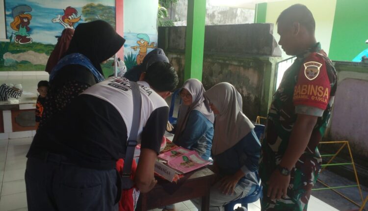Bahkan, di lokasi pelayanan tersebut juga turut disiagakan salah satu personel Babinsa yang nantinya sukarela membantu berjalannya pelayanan kesehatan bagi para balita tersebut.