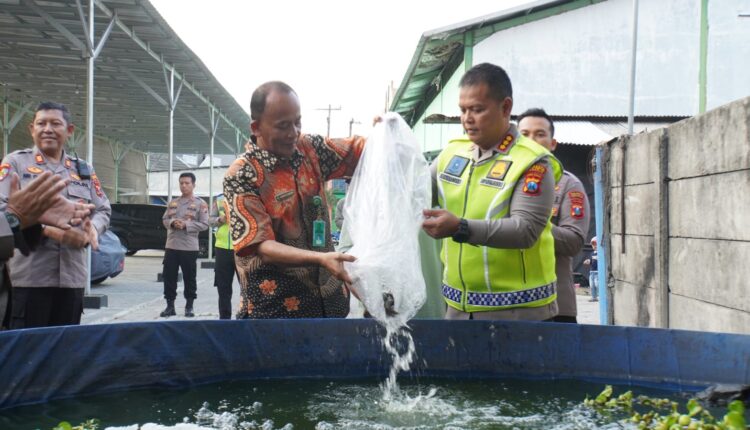 Dukung Ketahanan Pangan, Kapolresta Sidoarjo Tebar 5.000 Benih Ikan Lele