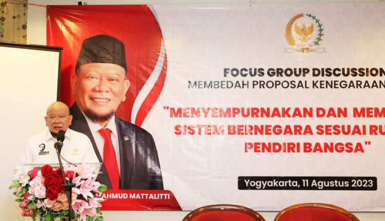 Hal itu terungkap pada acara Fokus Grup Diskusi Membedah Proposal Kenegaraan DPD RI dengan tema ‘Menyempurnakan dan Memperkuat Sistem Bernegara Sesuai Rumusan Pendiri Bangsa’ yang diselenggarakan di UC Resto, Komplek Universitas Gadjah Mada (UGM) Yogyakarta, Jumat (11/8/2023).
