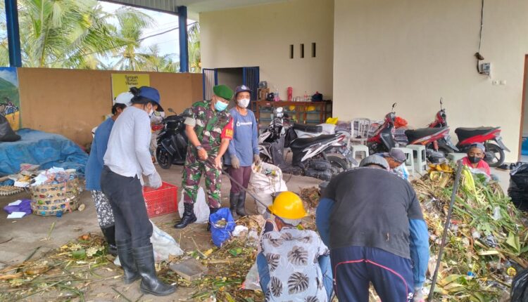 Klungkung, LNM – Tata cara pengolahan sampah yang berlangsung di TPS3R di Desa Bakas, Kabupaten Klungkung tak luput dari adanya pengawasan yang dilakukan oleh aparat Babinsa.
