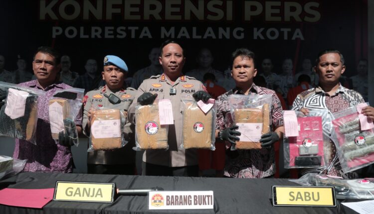 Kota Malang, LNM – Satresnarkoba Polresta Malang Kota Polda Jatim berhasil mengungkap empat kasus peredaran narkotika jenis ganja dan sabu.