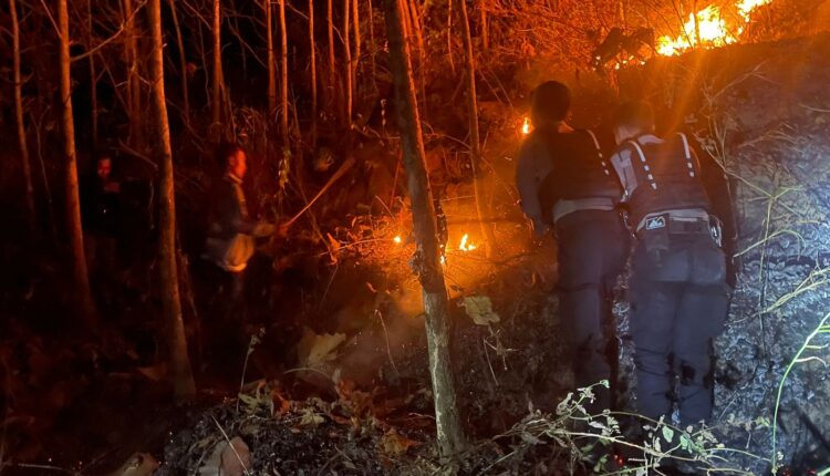 Magetan, LNM – Puluhan personil gabungan Polres Magetan dan TNI bersama BPBD, PMI serta masyarakat Kabupaten Magetan dikerahkan untuk memadamkan api yang membakar kebun jati rakyat di lereng gunung Bungkuk Desa Bungkuk Kecamatan Parang Kabupaten Magetan Jawa Timur, Minggu malam (13/08/2023).