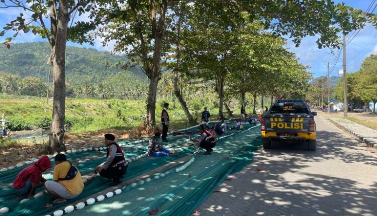 Saat melaksanakan patroli untuk memastikan Kamtibmas yang kondusif di wilayah pesisir Watulimo, menyempatkan diri mengunjungi sejumlah nelayan yang sedang sibuk memperbaiki jaring.