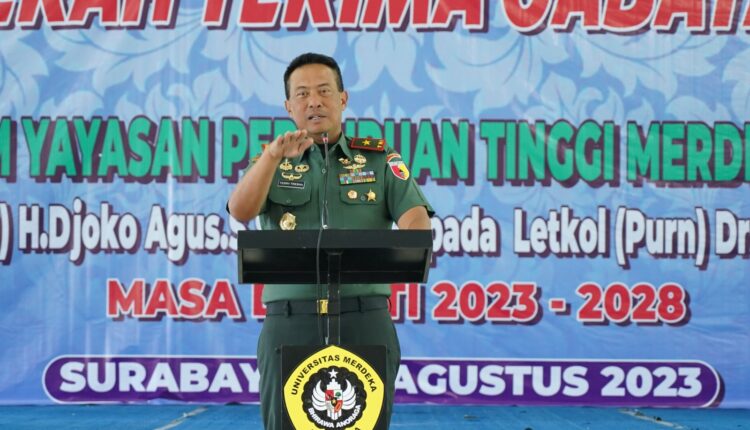 Surabaya, LNM – Serah terima jabatan Ketua Yayasan Perguruan Tinggi Merdeka (YPTM) Surabaya dihadiri oleh Danrem 084/BJ Brigjen TNI Terry Tresna Purnama, S.I.Kom.,M.M. Acara tersebut digelar di Aula Unmer Surabaya, Jl. Ketintang Madya VII no 02 kelurahan Karah, Jambangan, Surabaya, Rabu (23/8/2023).