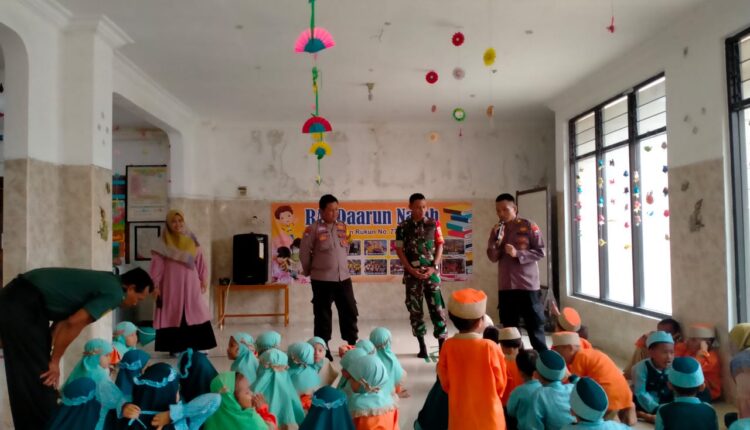 Surabaya, LNM – Bersama dengan Bhabinkamtibmas Brigpol Luthfi, Babinsa Kelurahan Dupak Serda M. Yahya dan Serda Prasy Ryan kenalkan profesi TNI dan Polri kepada siswa-siswi Pendidikan Anak Usia Dini (PAUD) RA. Daarun Najah Jl. Babadan Rukun No. 77 Kel. Dupak Kec. Krembangan, Rabu (23/08/2023).