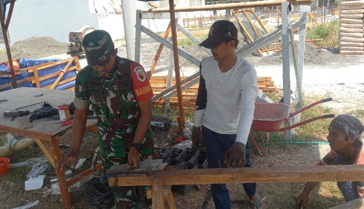 Dalam aksinya, Babinsa Serda Apik membantu pembuatan begel besi yang menjadi struktur dasar dari pembuatan pondasi bangunan. Ia membantu para tukang secara langsung demi memberikan motivasi dalam pengerjaannya.