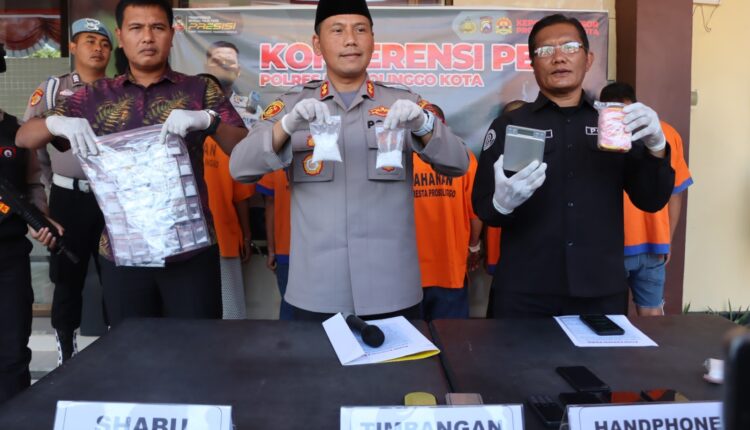 Kapolres Probolinggo Kota, AKBP Wadi Sa’bani S.H. S.I.K didampingi Kasat Narkoba AKP Joko dan Plt Kasihumas Iptu Zainullah dalam kegiatan konferensi pers menegaskan, pengungkapan kasus tersebut, semuanya merupakan kasus peredaran sabu.