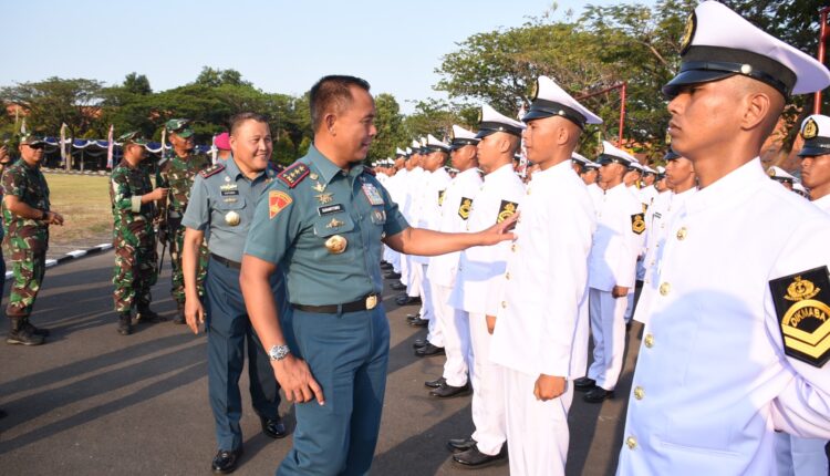 Surabaya, LNM – Komandan Kodiklatal Letjen TNI Marinir Suhartono mengecek langsung kesiapan siswa Dikmaba TNI AL Angkatan XLIII/1 tahun 2023, jelang dilantiknya mereka menjadi prajurit TNI AL dan menyandang pangkat Sersan Dua. Pengecekan dilaksanakan di Lapangan Laut Maluku, Rabu sore (6/9/2023).