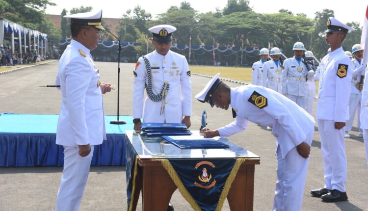 Surabaya, LNM – Komandan Komando Pembinaan Doktrin Pendidikan dan Latihan TNI Angkatan Laut (Kodiklatal) Letjen TNI Marinir Suhartono, melantik dan mengambil sumpah 700 orang siswa Pendidikan Pertama Bintara (Dikmaba) TNI AL Angkatan XLIII/1 TA 2023 dalam upacara militer yang dihelat di Lapangan Laut Maluku Mako Kodiklatal Bumimoro Surabaya, Kamis (7/9/2023).