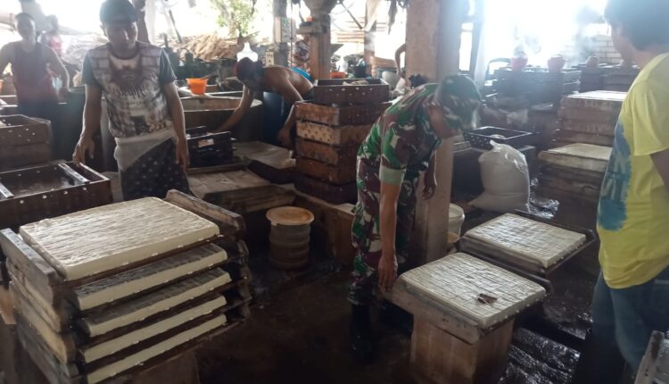 Babinsa Koramil Ujungpangkah Kunjungi Tempat UMKM Pembuatan Tahu, Dorong Semangat Para Pekerja