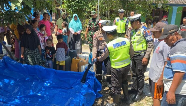 Bojonegoro, LNM – Di musim kemaru ini masih banyak masyarakat yang mengalami kesulitan air bersih, untuk itu Satuan Lalu Lintas (Satlantas) Polres Bojonegoro kembali berbagi dengan menyalurkan air besih kepada masyarakat.