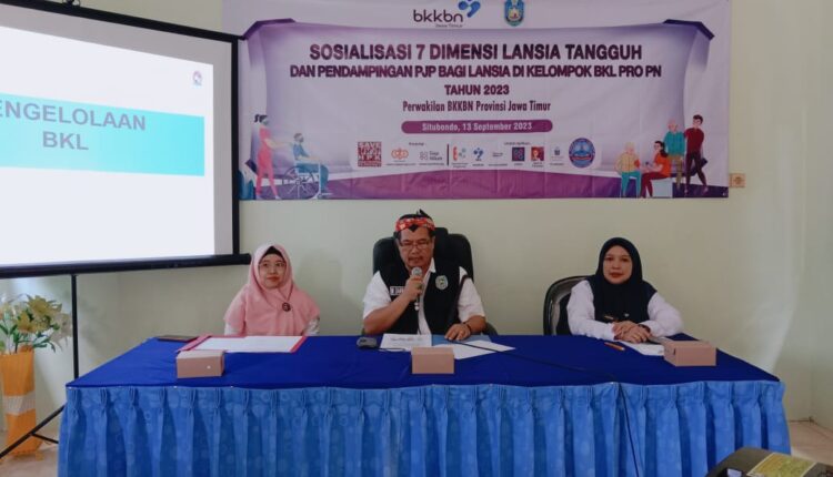 Kelompok BKL (Bina Keluarga Lansia) merupakan salah satu wadah yang dekat dengan masyarakat untuk dapat menciptakan kesadaran dan pemahaman tersebut. Pada tahun 2023, sebanyak 1.360 kelompok BKL yang menjadi target ProPN di sleuruh Jawa Timur memperoleh pembinaan 7 Dimensi Lansia Tangguh dan Pendampingan Perawatan Jangka Panjang (PJP) bagi Lansia. Kegiatan yang dilakukan serentak mulai tanggal 11 hingga 15 September 2023 di 38 Kabupaten/Kota se-Jawa Timur ini dihadiri oleh perwakilan Kelompok BKL dan Penyuluh KB di kabupaten/Kota. Para peserta dibekali pengetahuan serta keterampilan terkait kelanjutusiaan dari para narasumber professional, yaitu mengenai Pengelolaan Stress pada Lansia serta Penanganan Kegawatdaruratan Sederhana pada Lansia.