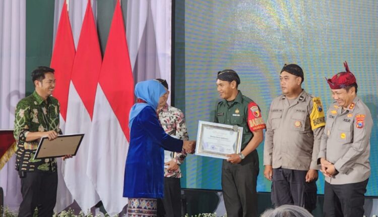 Surabaya, LNM – Tiga Pilar Desa Kendalbulur, Kecamatan Boyolangu, Kabupaten Tulungagung, yakni Babinsa Serma Rony Setyawan, Bhabinkamtibmas Aipda Agus Wahyudi, dan Kades Anang Mustofa yang berhasil menjadi juara 1 Anugerah Patriot Jawi Wetan 2023. Penyerahan penghargaan dilakukan di Gedung Negara Grahadi Surabaya, Rabu (20/9/2023) malam.
