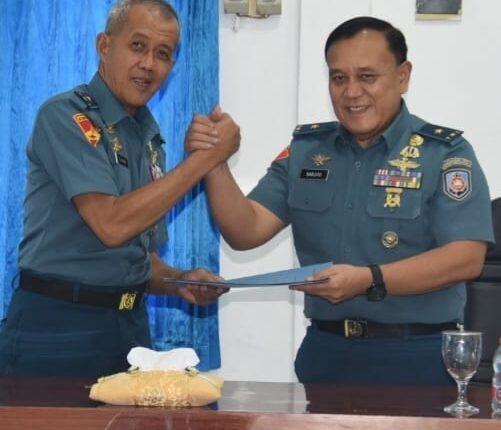 Surabaya, LNM – Menjelang serah terima jabatan (Sertijab) Kepala Kelompok Tenaga Pendidik (Kapokgadik) Komando Pembinaan Doktrin Pendidikan dan Latihan TNI Angkatan Laut (Kodiklatal), Brigjen TNI Marinir Ichwan Dargianto melaksanakan memorandum bersama calon penggantinya Brigjen TNI Marinir Sarjito, bertempat di Gedung Krakatau Pokgadik Kodiklatal, Bumimoro Surabaya. Kamis, (21/09/2023).