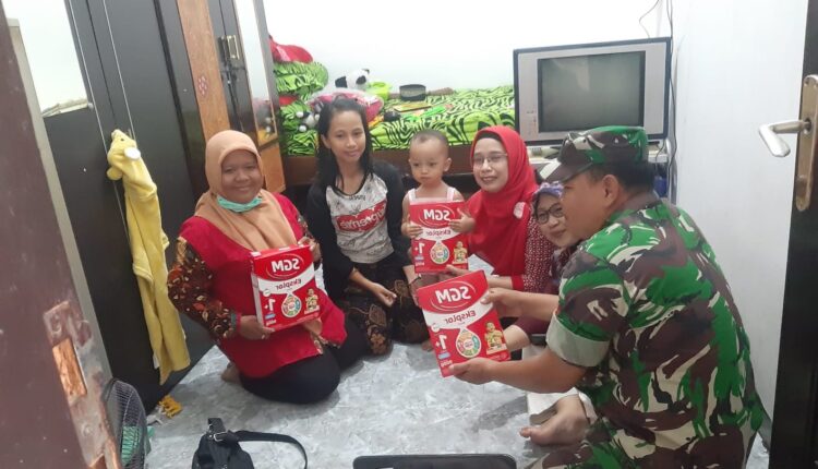 Babinsa Koramil 0830/02 Semampir Dampingi Pemberian Bantuan Susu Kepada Anak Berisiko Stunting