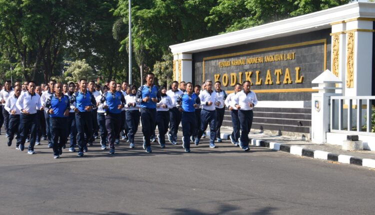 Surabaya, LNM – “Walaupun kalian tidak di desain berprestasi di bidang olahraga, tetapi setiap hari kemampuan fisik itu harus di maintenance bukan karena paksaan, sehingga kegiatan pembinaan fisik yang dilaksanakan melalui olahraga rutin Selasa dan Jumat selalu di kerjakan dengan gembira dan happy,” demikian dikatakan Komandan Komando Pembinaan Doktrin Pendidikan dan Latihan TNI AL (Dankodiklatal) Letjen TNI Marinir Suhartono seusai memimpin lari bersama para prajurit dan PNS Kodiklatal, bertempat di Lapangan Laut Maluku Kodiklatal, Bumimoro Surabaya. Selasa, (26/09/2023).