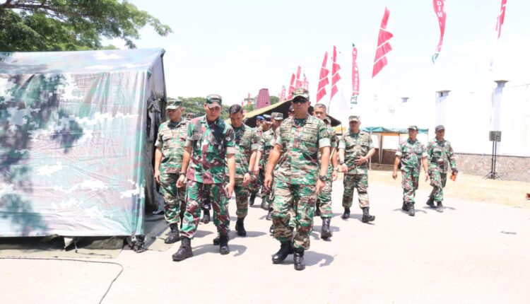 Bangkalan, LNM – Komandan Korem 084/Bhaskara Jaya Brigjen TNI Terry Tresna Purnama, S.I.Kom., M.M. meninjau kesiapan pelaksanaan Bhakti Sosial Kesehatan di Lapangan R.P. Moch. Noer Bangkalan, Jum’at (29/09/2023).