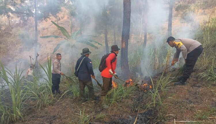 Gerak Cepat Polisi Bersama Perhutani dan Warga Padamkan Kebakaran Lahan di Trenggalek