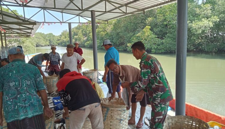 Gresik, LNM – Menjalankan fungsinya sebagai pengayom dan pelopor usaha warga masyarakat desa, Babinsa Sertu Prayogo anggota Koramil 0817/15 Bungah mendampingi proses transaksi ikan bandeng yang bertempat di Tempat Pelelangan Ikan Desa Watu Agung, Kecamatan Bungah, Kabupaten Gresik, Rabu (11/10/2023).