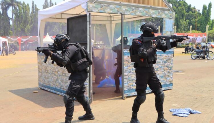 Tuban, LNM – Polres Tuban menggelar Simulasi Sistem Pengamanan Kota (Sispamkota) dalam rangka kesiapan Pengamanan Pemilu serentak tahun 2024 yang dilaksanakan di Alun-alun Kota Tuban, Selasa (10/10/23).