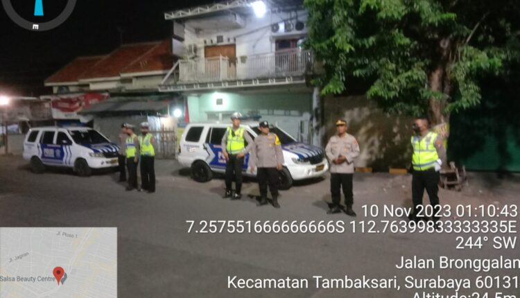 SURABAYA, LNM – Polsek Tambaksari melakukan patroli Kejahatan Malam di beberapa lokasi rawan kriminalitas khususnya menjelang dinihari di Jl. Gersikan Surabaya wilayah Kecamatan Tambaksari, Jum’at dini hari (10/11/2023).
