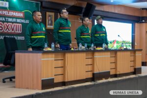 Mereka diberangkatkan secara resmi oleh Badan Pembina Olahraga Mahasiswa Indonesia ( Bapomi ) Jawa Timur di Rektorat, Universitas Negeri Surabaya ( UNESA ) pada Kamis, 9 November 2023.