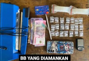 Dari tangan tersangka polisi mengamankan barang bukti sabu 21 poket siap edar. Kini Polisi masih memburu bandar sabu tersebut.
