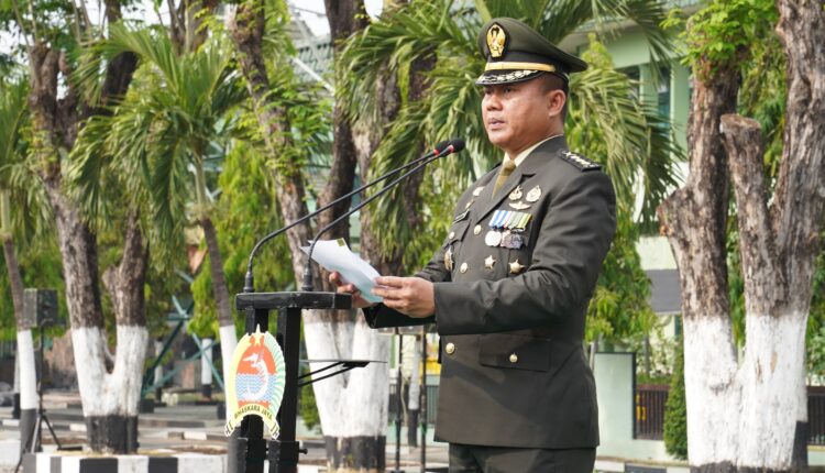 Surabaya, Lintasnetworkmedia.com – Kepala Staf Korem (Kasrem) 084/Bhaskara Jaya Kolonel Inf Budhi Utomo, S.I.P. memimpin upacara dalam rangka Hari Pahlawan Tahun 2023 di lapangan Makorem 084/BJ Jalan Achmad Yani No. 1 Surabaya, Jum’at (10/11/2023).