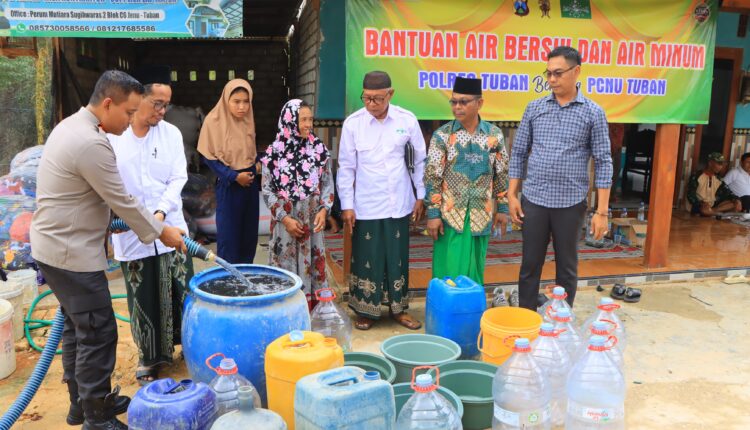Tuban, Lintasnetworkmedia.com – Tak kunjung turun hujan Kepolisian Resor Tuban bersama Pengurus Cabang Nahdlatul Ulama (PCNU) Tuban menggelar bakti sosial pembagian air bersih kepada warga yang terkena dampak kekeringan saat musim kemarau.