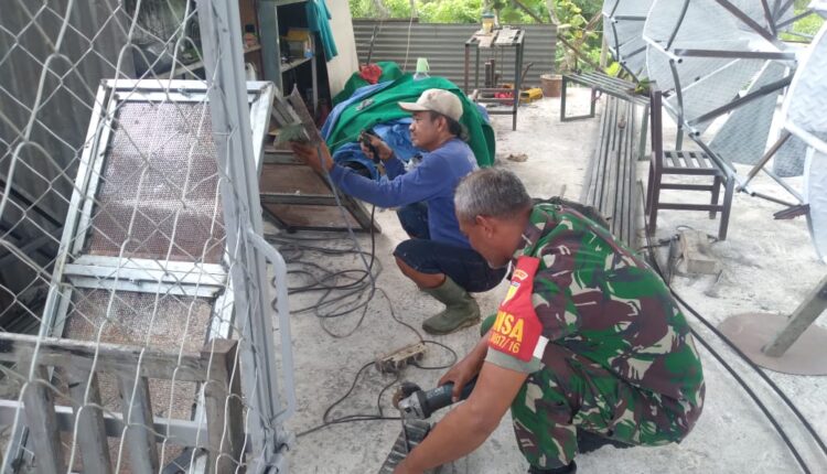 Bina Kerjasama Yang Baik, Babinsa Dukun Bantu Pengerjaan Pembuatan Tangga Besi di Wilayah Desa