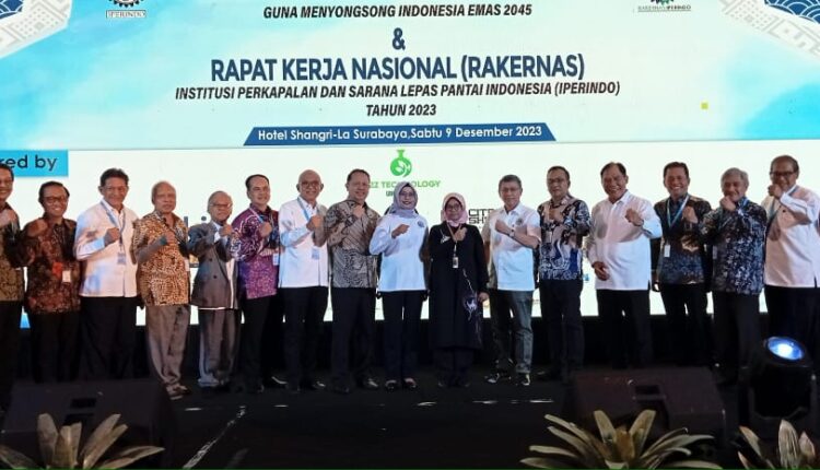 SURABAYA – IPERINDO (Ikatan Perusahaan Galangan Kapal dan Lepas pantai) menyelenggarakan rapat kerja nasional (Rakernas) ke-2 yang dihadiri Staf Khusus Menteri Keuangan Bidang Perumusan Kebijakan Fiskal Regional, Ibu Titik Anas, SE, M.Econ.Dev, PhD dan Direktur Jendral Perhubungan Laut, Kementerian Perhubungan, yang diwakili oleh Kepala Kantor KSOP Utama Tanjung Perak, Bapak Capt. Heru Susanto, MM di Hotel Shangri-La Surabaya, Sabtu (9/12/2023).