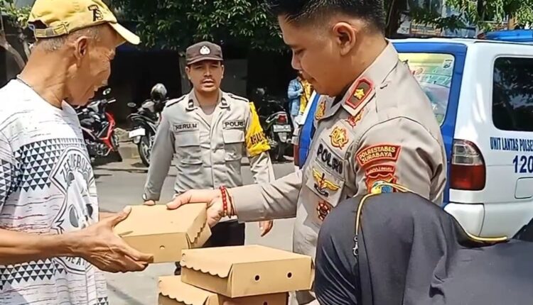 Surabaya, Lintasnetworkmedia.com – Puluhan anggota jajaran polsek simokerto berdiri di bahu jalan dengan membawa beberapa kantong kresek berisi kotak makanan dan banyak yang mengira sedang melakukan kegiatan razia kendaraan oleh masyarakat, namun ternyata dugaan tersebut tidaklah benar.