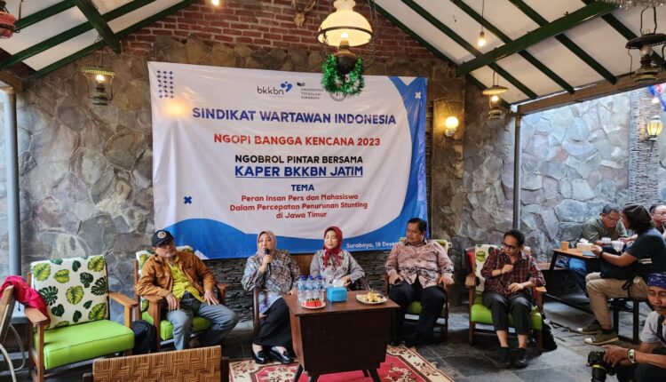 Surabaya – Badan Kependudukan dan Keluarga Berencana Nasional (BKKBN) Provinsi Jawa Timur menjadi narasumber di Ngopi Bangga Kencana (Ngobrol Pintar Bareng Kaper BKKBN Jatim). Dengan tema, Peran Insan Pers dan Mahasiswa Dalam Percepatan Penurunan Stunting di Jawa Timur. Kegiatan ini di inisiasi oleh Sindikat Wartawan Indonesia (SWI).