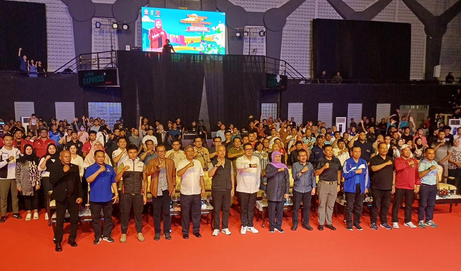 SURABAYA, LNM- Gubernur Jawa Timur Khofifah Indar Parawansa memberikan perhatian dan juga apresiasi pada Insan Kepemudaan dan Olahraga Jawa Timur. Hal itu diwujudkan dengan menyelenggarakan secara meriah Malam Apresiasi Insan Kepemudaan dan Olahraga Jawa Timur yang digelar di GOR Basket Kertajaya Surabaya, Selasa ( 19 / 12 / 2023 ) malam.