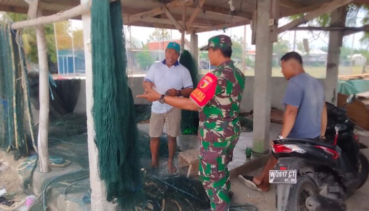 Gresik, LNM – Babinsa Serka Suyanto Koramil 0817/14 Panceng dengan ramahnya mendatangi warganya yang berprofesi sebagai seorang nelayan di Desa Campurejo. Kedatangannya untuk memberikan semangat dan sekaligus membantu mengecek jaring ikan yang digunakan warganya untuk aktivitas melaut sehari-harinya.