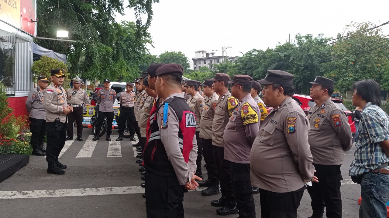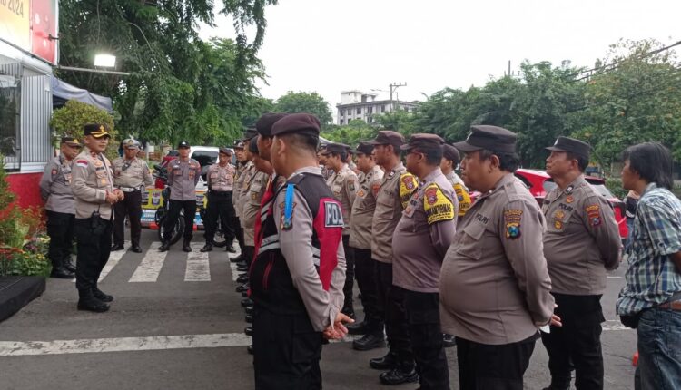 Surabaya, LNM – Terpantau Puluhan Personil Kepolisian Polsek Simokerto Polrestabes Surabaya berjaga mengantisipasi perayaan malam tahun baru 2024 di depan Mall ITC pada (31/12) sekira pukul 16.30 Wib.